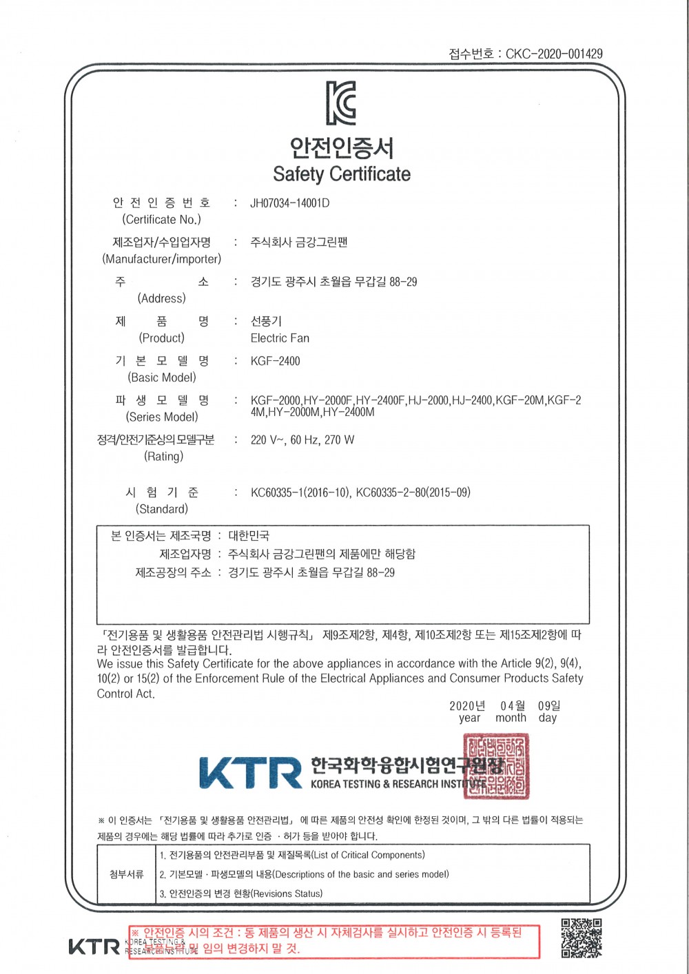 KC 안전인증 | KGF-2400
