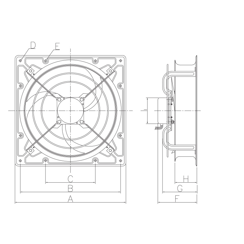 K-45F 관련링크 본문 내구성, 내식성, 볼베어링 채택, 고효율 날개공장, 작업장, 창고시설, 농가, 축사용에 적합 MODEL : K-45F Specification • Power(V) 220 • Current(A) 1.43 • Input(W) 290 • R.P.M 1,720 • Air Flow(m 3/hr) 7,080 • Fan Size 450 • Weight(kg) 13.5 Dimension • A 620 • B 560 • C 278 • D Ø12 • E Ø12 • F 218 • G 192 • H 123 • I Ø145 목록