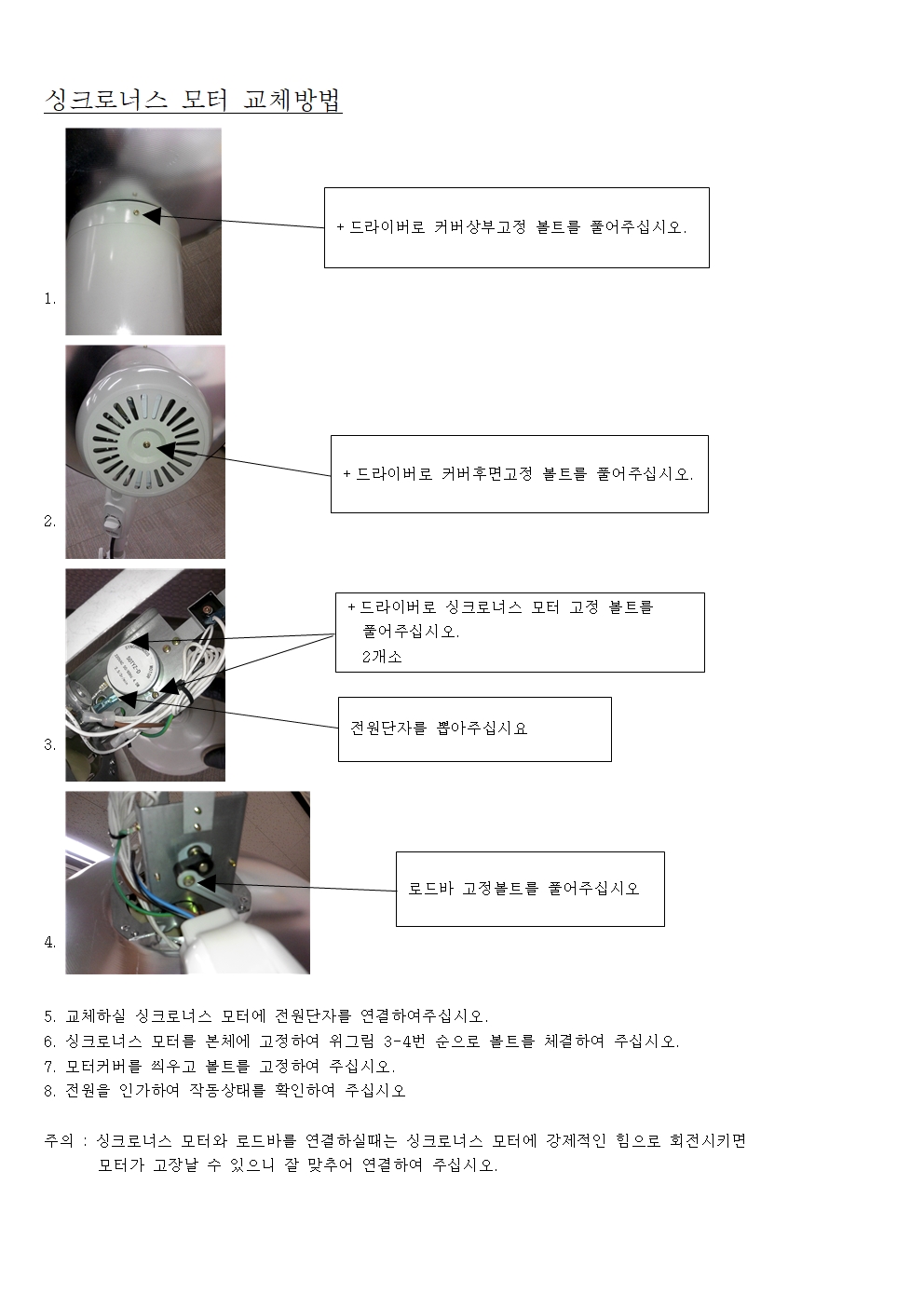 카본히터 회전(싱크로너스)모터 교체방법